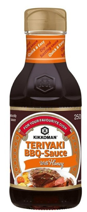 KIKKOMAN Teriyaki Omáčka BBQ S Medem 250ml je sladká a aromatická omáčka s bohatou chutí teriyaki a jemným nádechem medu, ideální pro grilování, pečení nebo jako marináda na maso, ryby nebo zeleninu.