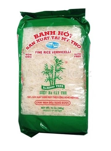 TUFOCO Rýžové Nudle BANH HOI 340g are traditional Vietnamese rice noodles often used in various dishes like fresh spring rolls or served with a variety of dipping sauces. The texture of these noodles is light, soft, and slightly chewy, perfect for a wide range of recipes that highlight the freshness of rice noodles.