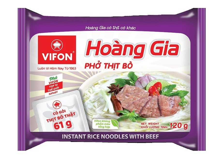 VIFON Hoang Gia Instantní Nudle Hovězí 120g jsou rychle připravitelné nudle s výraznou hovězí příchutí. Tento produkt je ideální pro ty, kteří hledají chutné a syté jídlo, které si mohou připravit během několika minut.